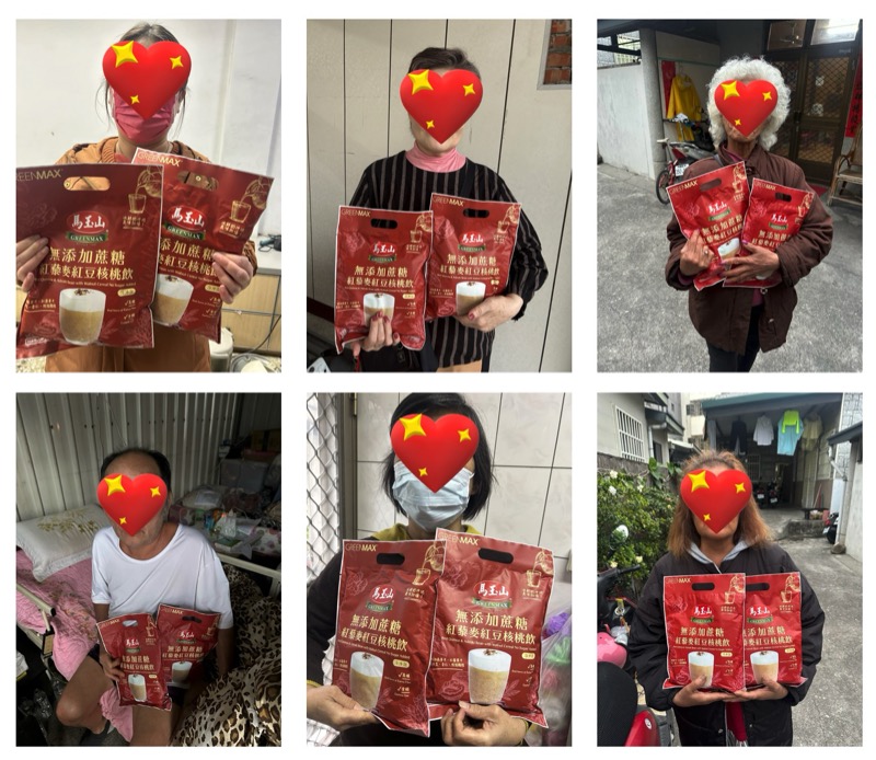 感謝馬玉山食品工業股份有限公司捐贈無添加蔗糖紅藜麥紅豆核桃飲30gx12pcs(包)×206包,捐助本會協助弱勢家庭。